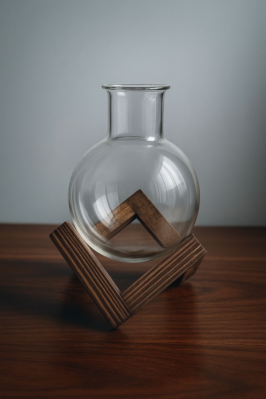 🔸 جنس: شیشه شفاف + پایه چوبی مقاوم